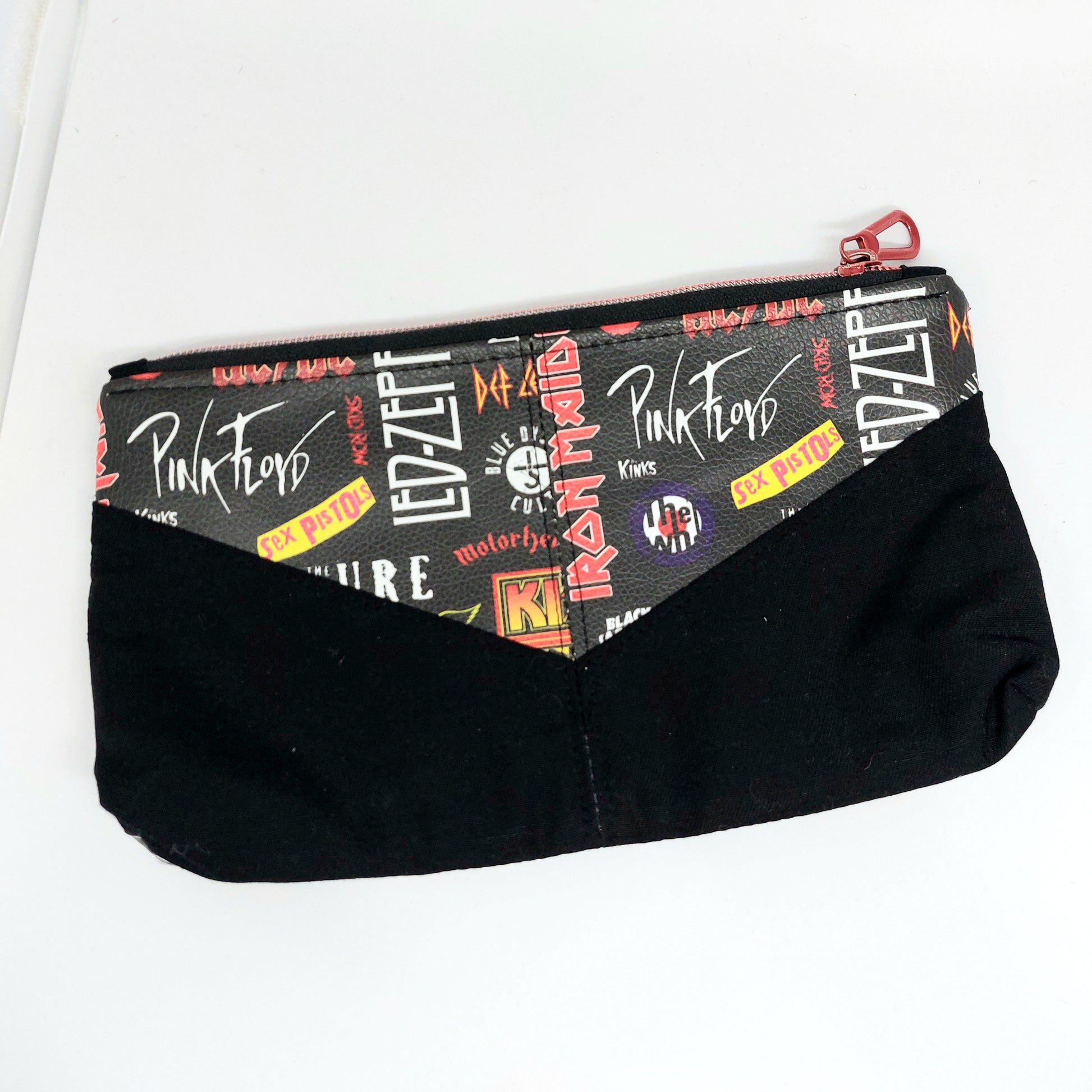 Svart clutch er laga med vinyl.