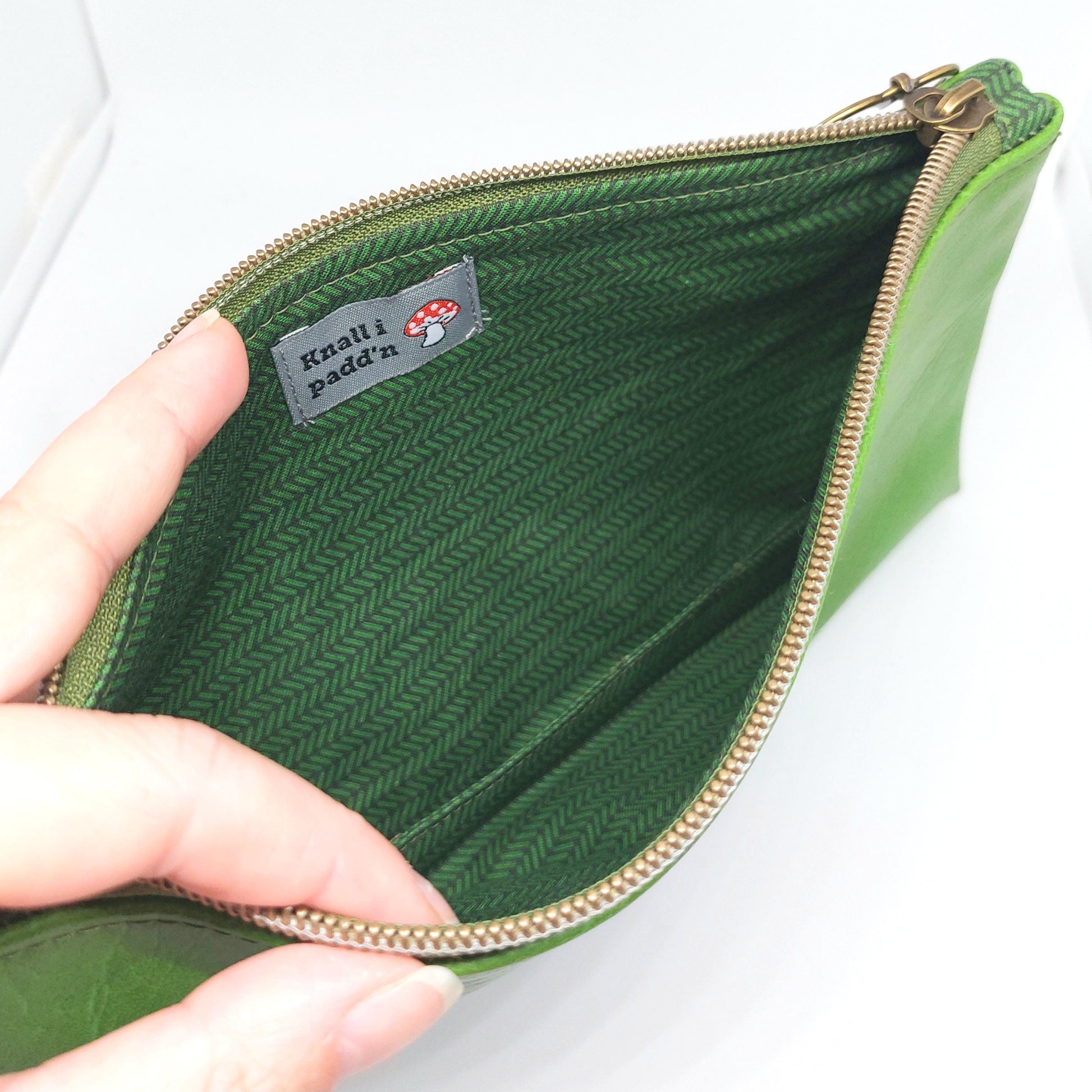 Grøn clutch er laga med møbelskai.