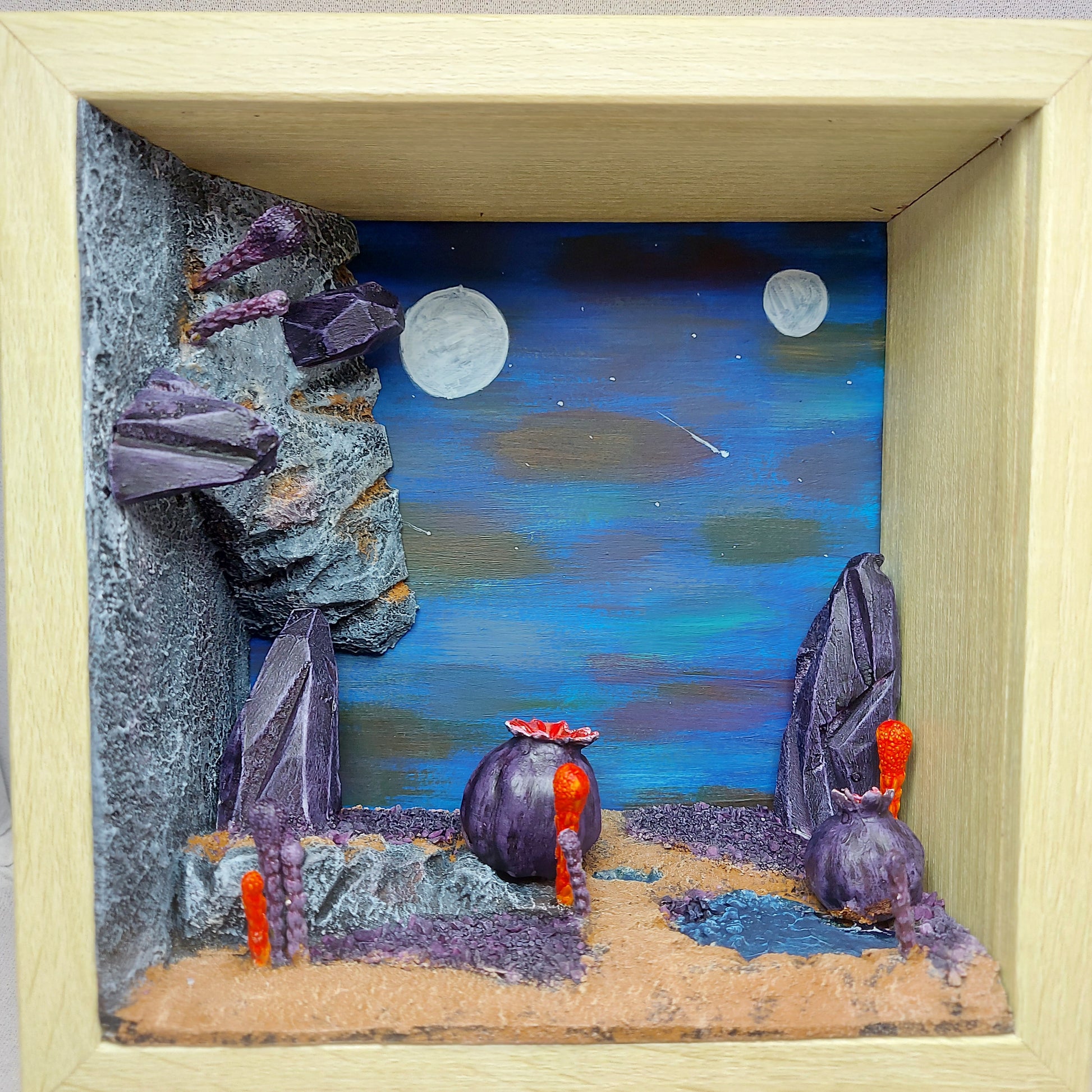 Here you get a set of two frames with an alien world in them. Who knows where this world is, with its two moons and alien plants?