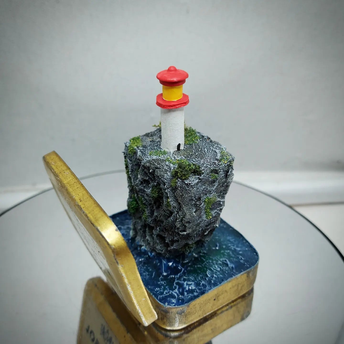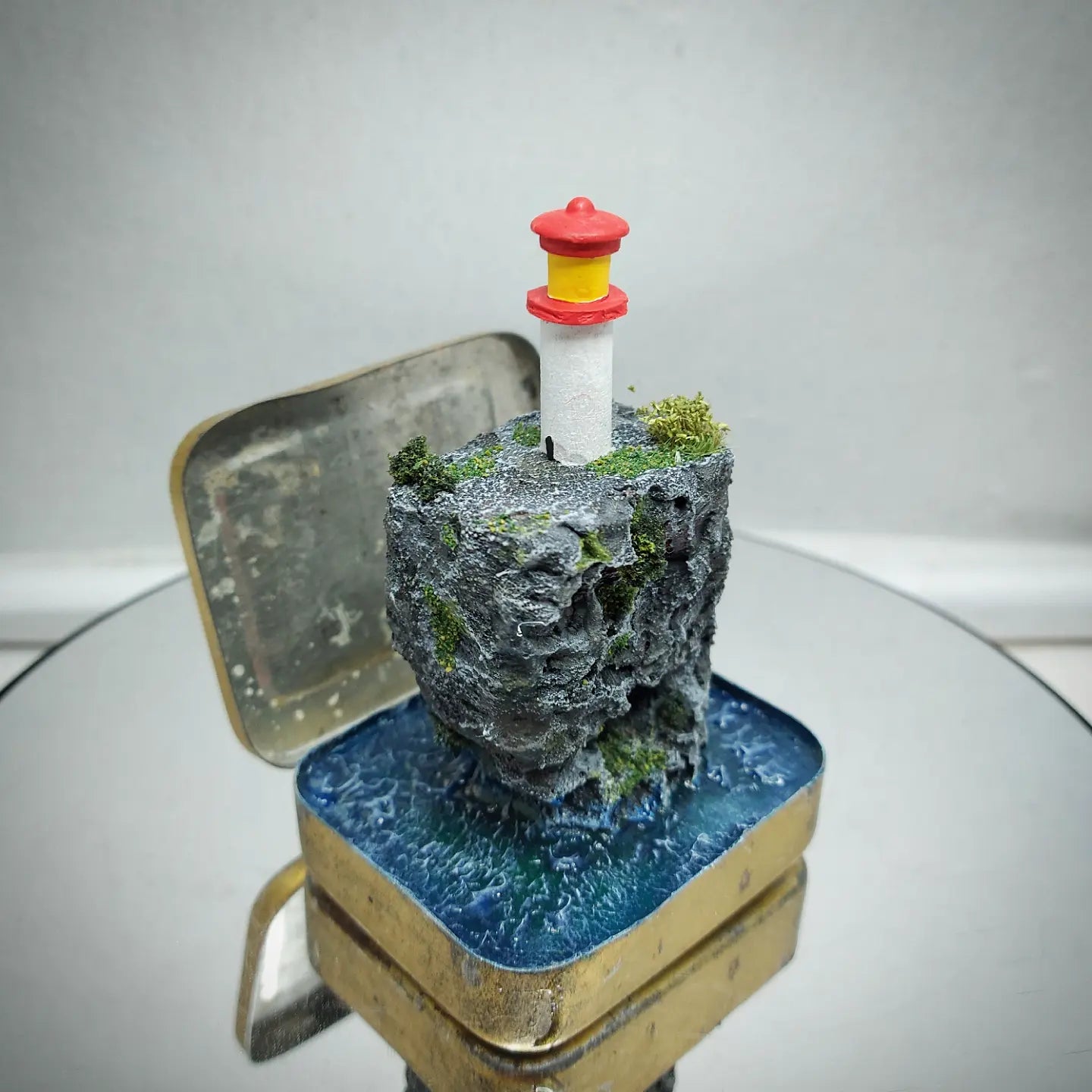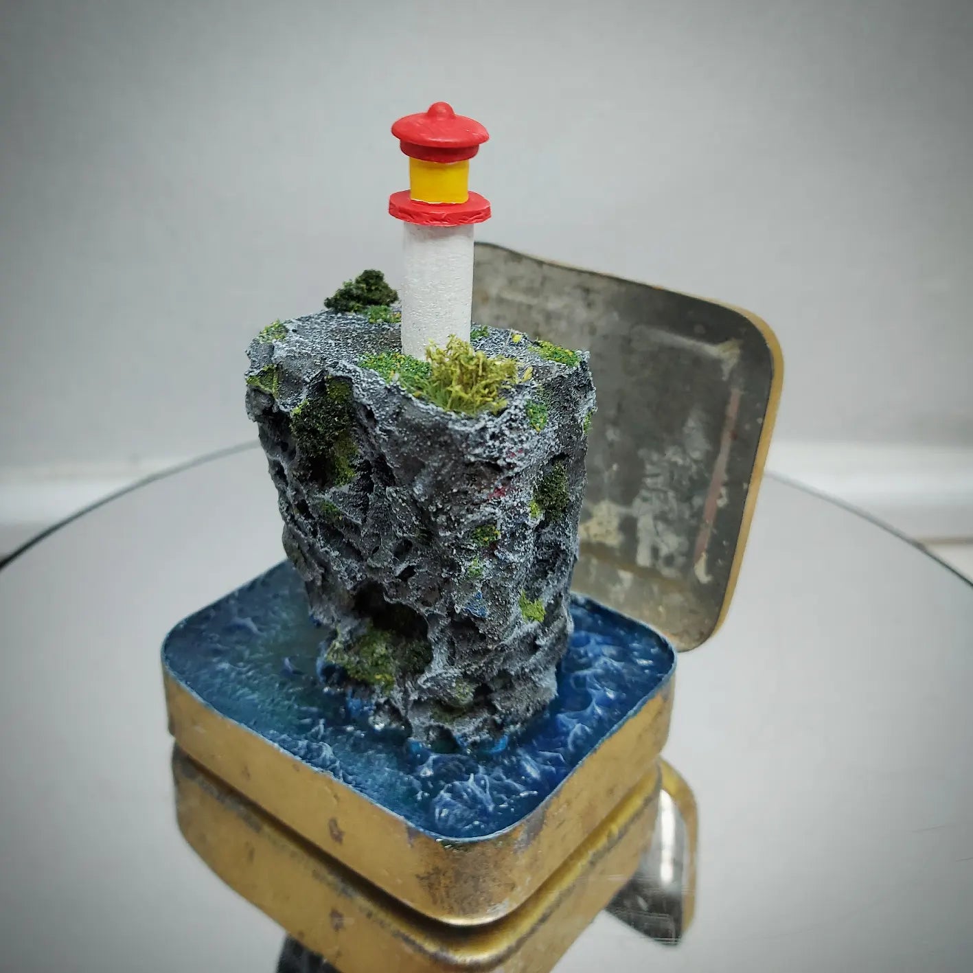Ikkje alt kjem i store pakningar! Her får du eit lite og handlaga diorama i ei gammal, lita boks.