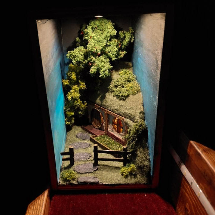 Here you get a bit of Middle earth into your own living room. An authentic hobbit cave with internal light and interior.