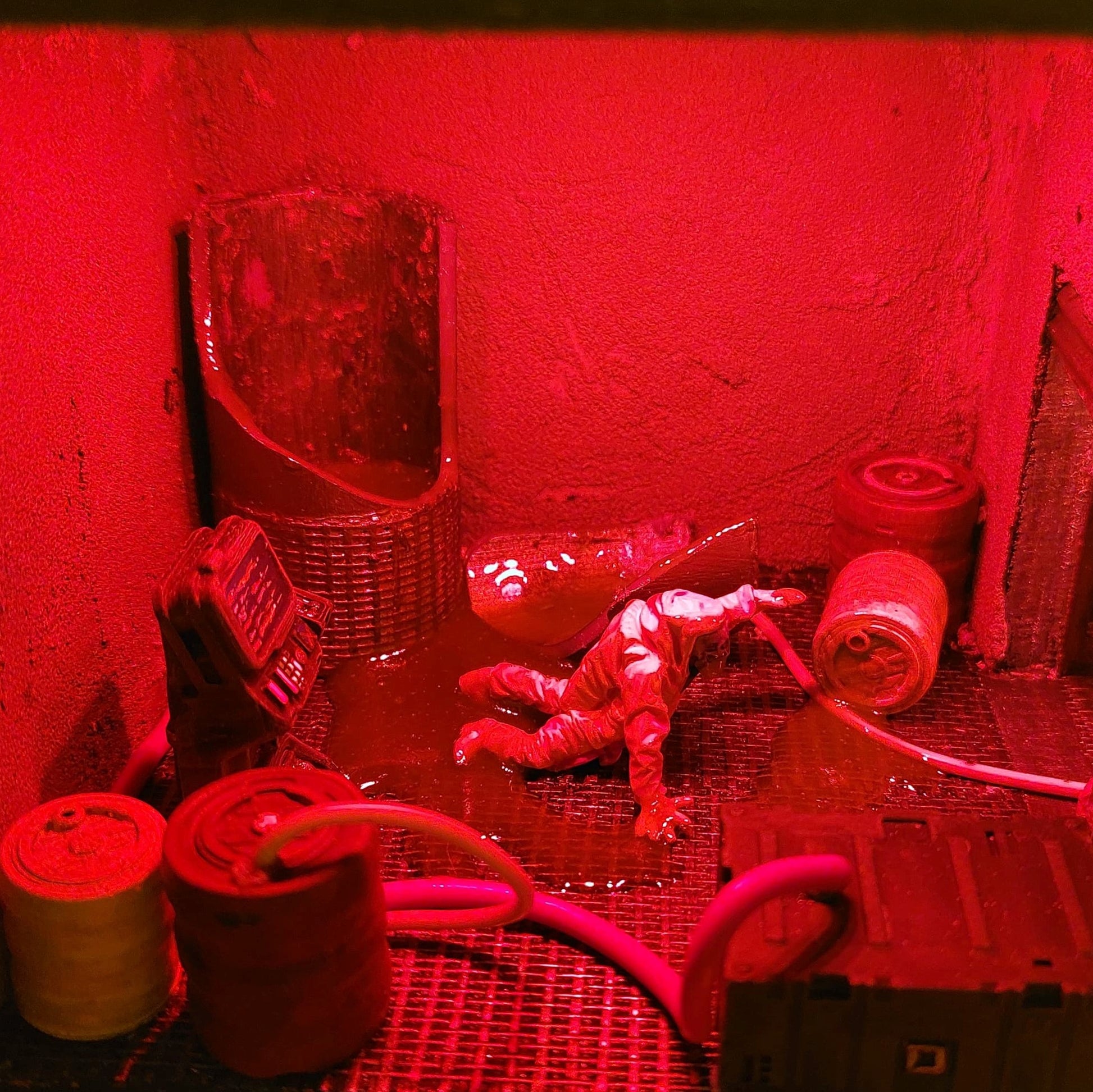 This book nook is made from, among other things, plywood, acrylic paint, xps-foam and 3D-printed miniatures.