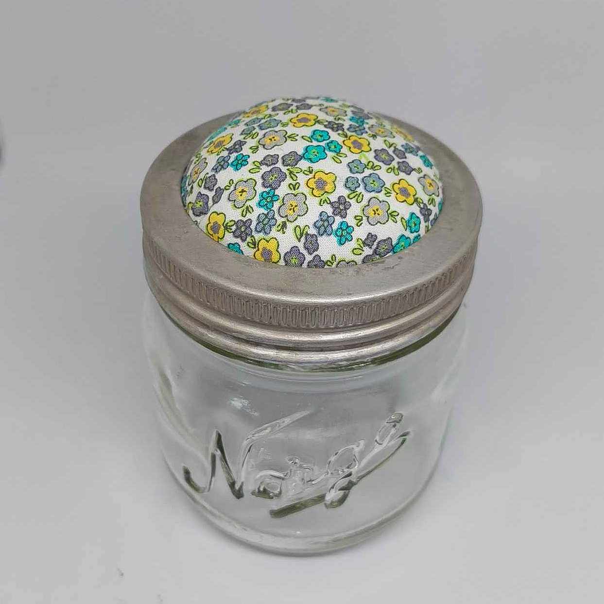 Nålpute festa på norgesglas, med god oppbevaringsplass i glaset🧵🪡
