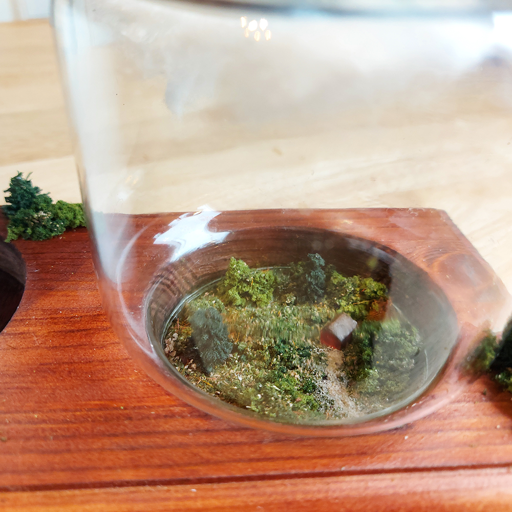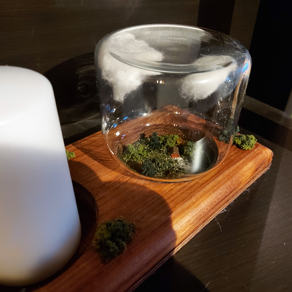 Here you will find two cabins, well placed between forest and scrub. This candlestick is made of wood, with space for a large cube candle, with natural decorations on the candlestick itself.