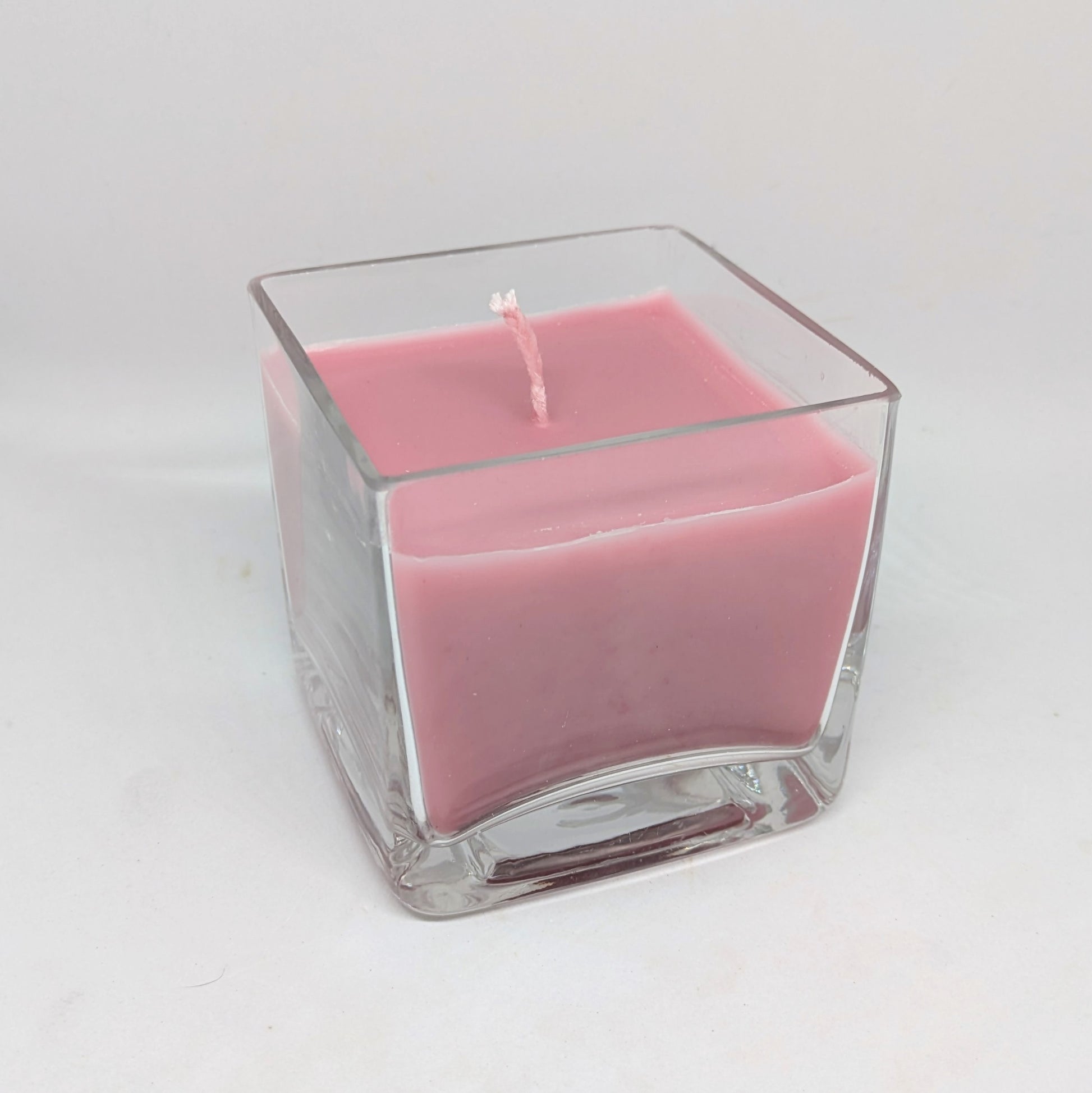 Lys støypt av lysrestar, med hint av jasminduft. Behaldar frå gjenbruksbutikk.