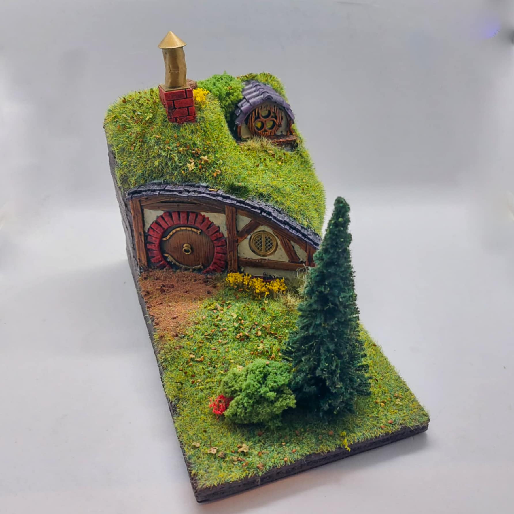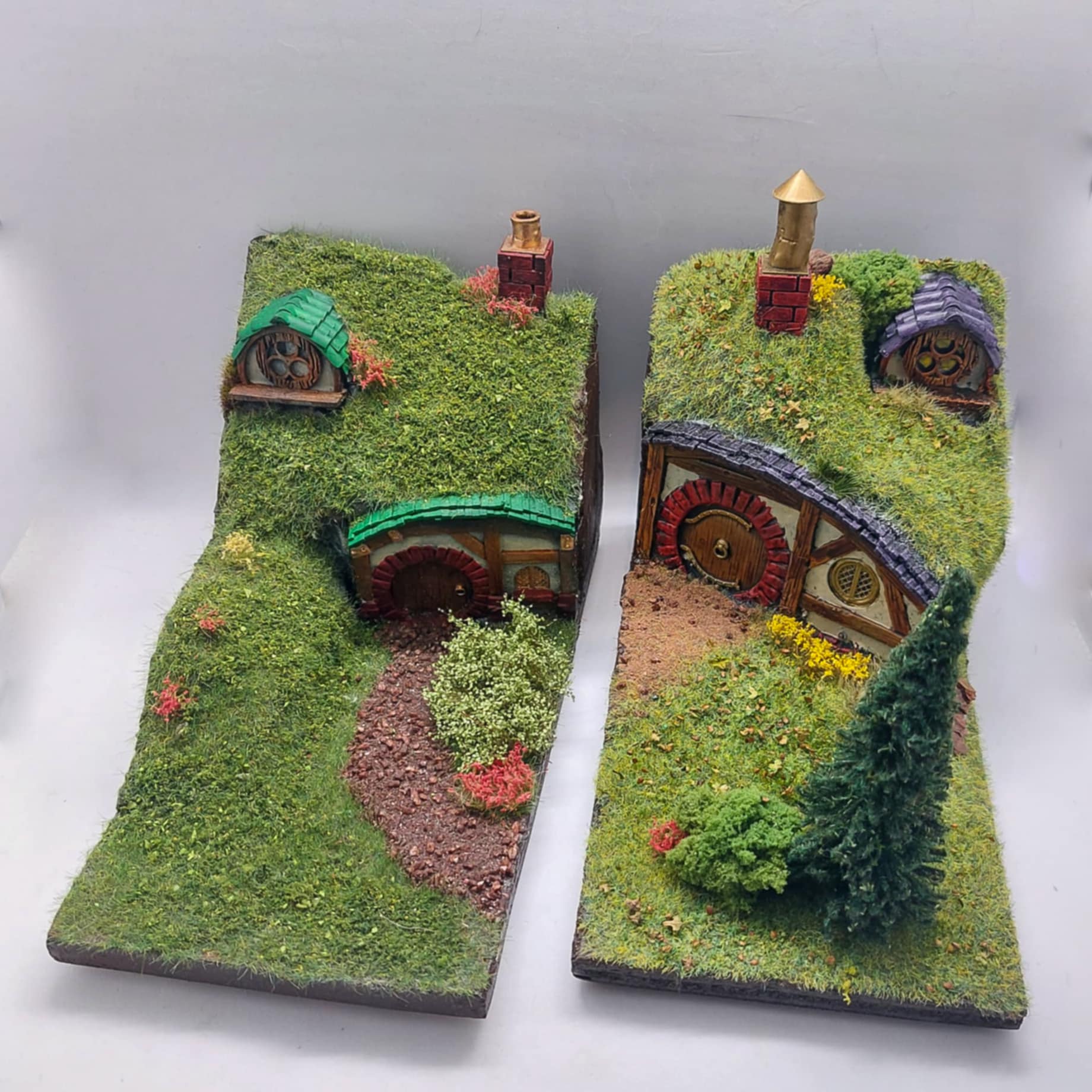 Desse er laga med måla 10 cm x 18 cm, med varierte frontar og vegetasjon. Når du kjøper ei av desse, kjøper du ei tilfeldig hobbithole i dei måla. Kvar hobbithole har både busker, gras og tre, og er både trivelig og fargerik.