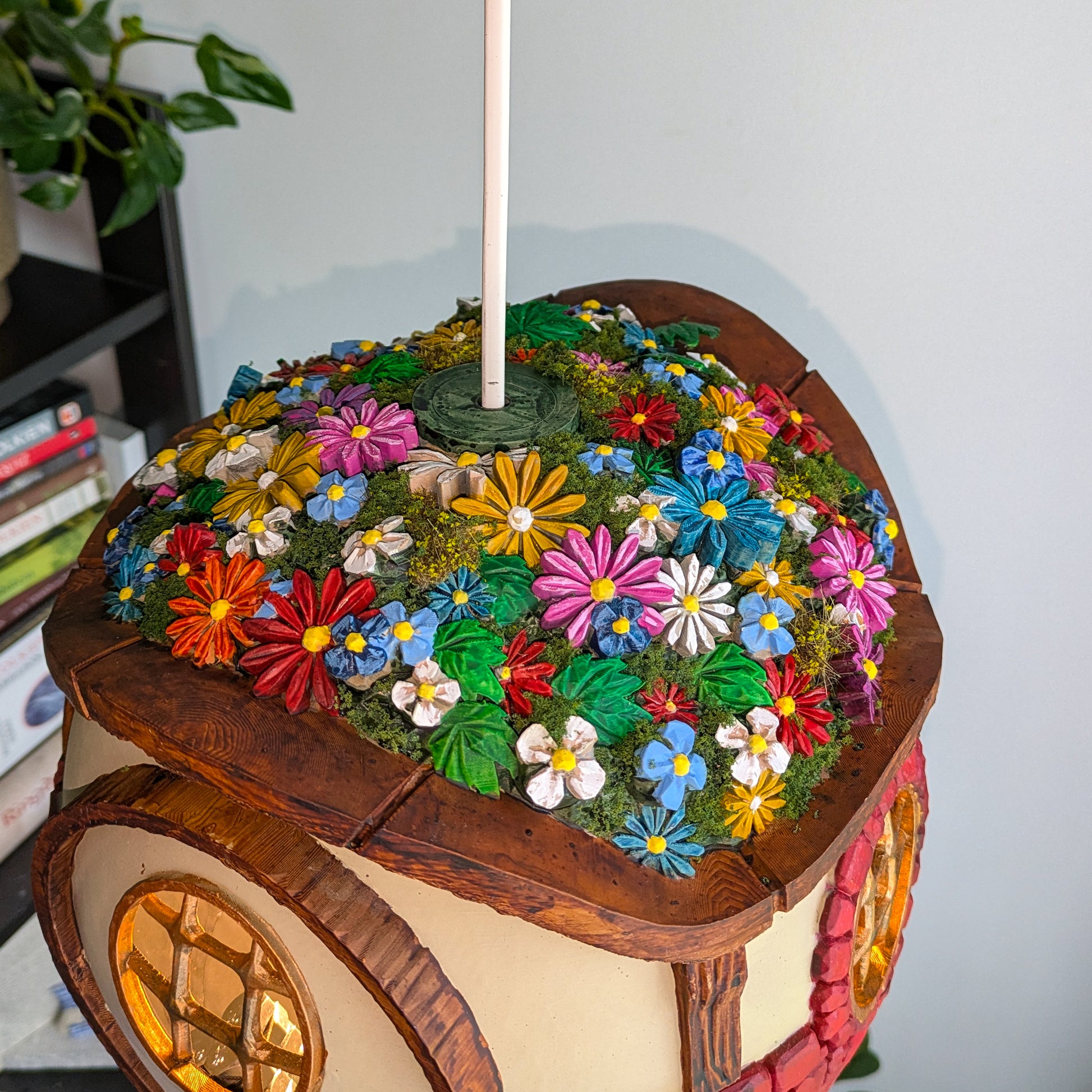 Den er 3D-printa og handmala av oss, med ekstra detaljar på toppen som vegetasjon og anna.
