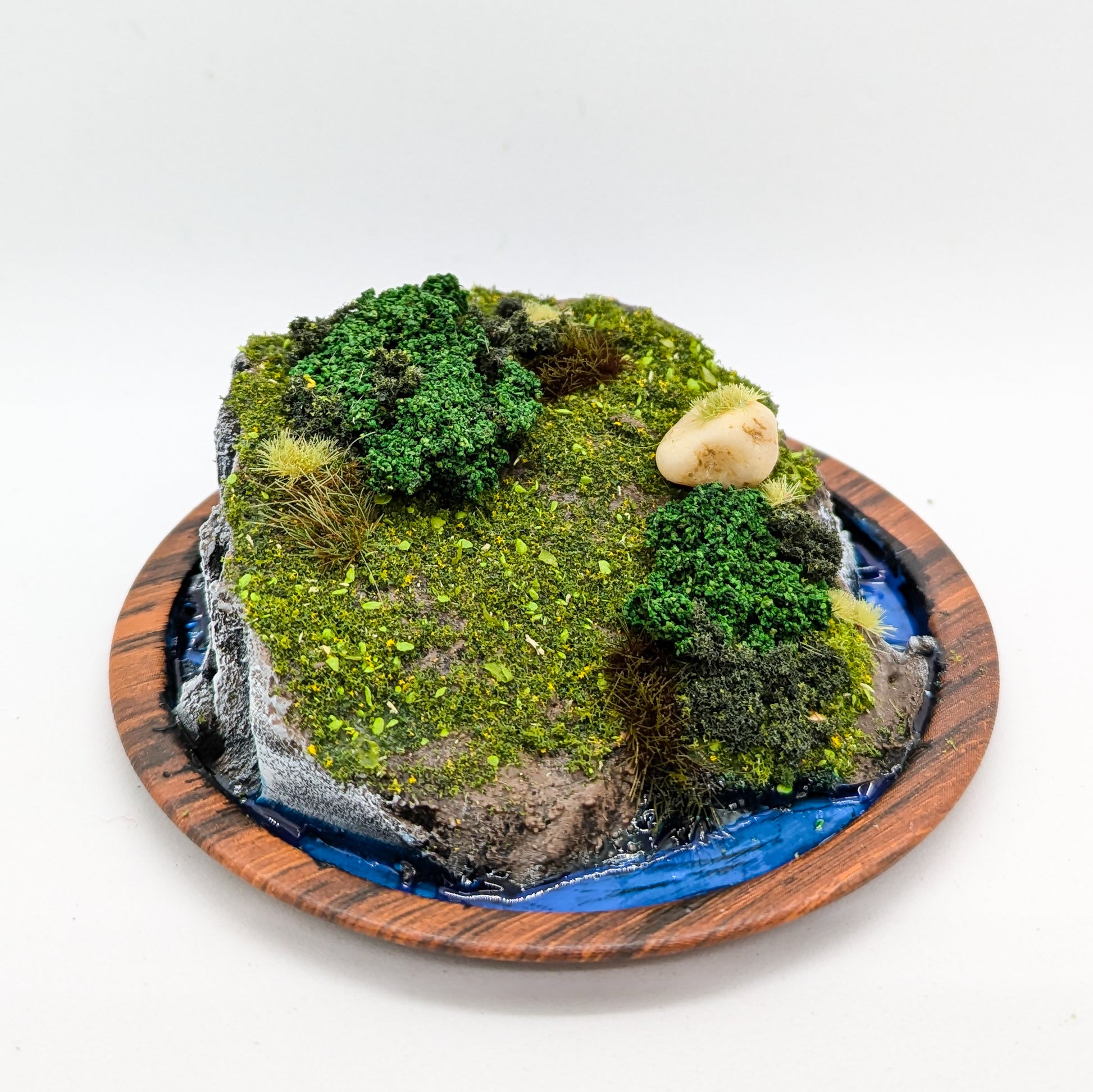 Så små kan ein altså lage diorama, 8 cm breie. Man treng ikkje mykje plass for å ta naturen med inn i stova.