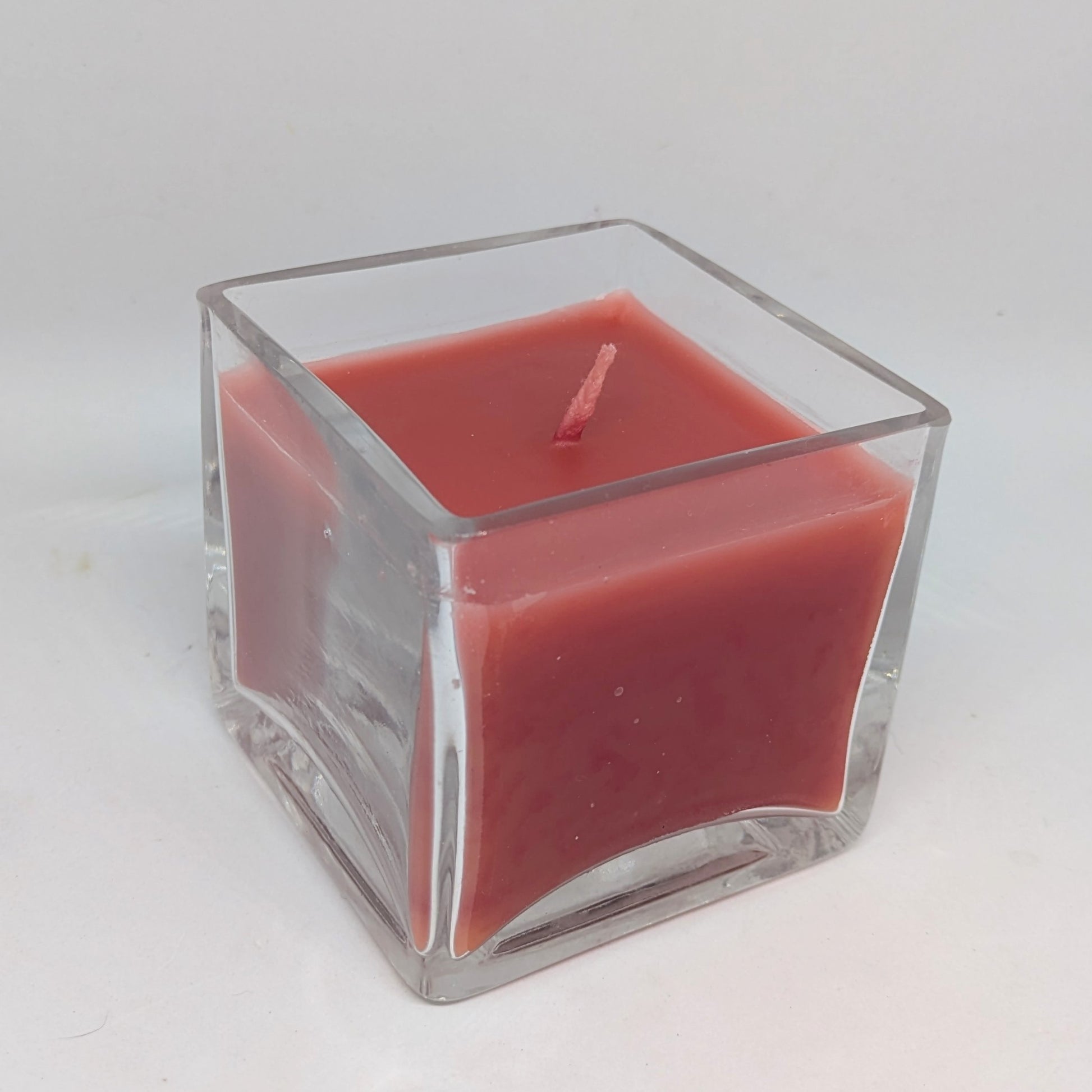 Lys støypt av lysrestar, med hint av jasminduft. Behaldar frå gjenbruksbutikk.